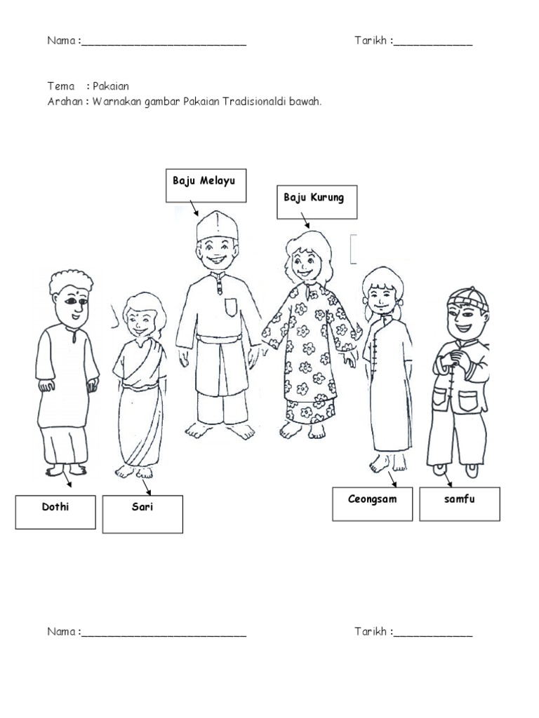 Contoh Lembaran Kerja Pakaian Di Malaysia Untuk Mewarna